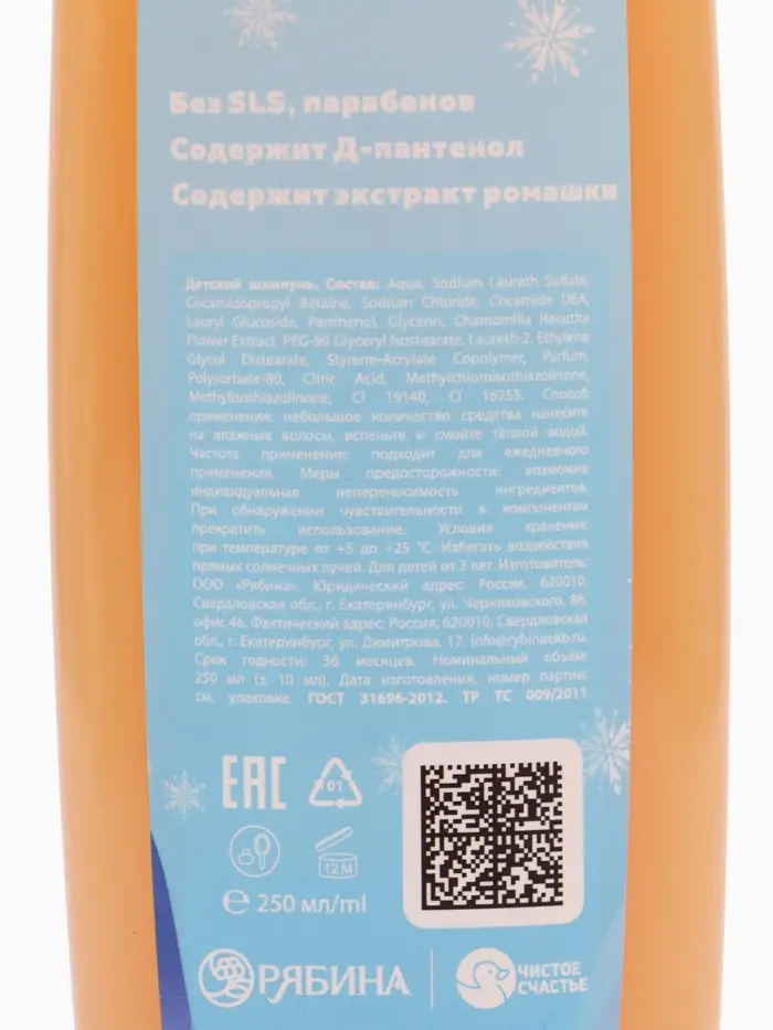 Детский шампунь, аромат пломбир, 250 мл, Снежная принцесса