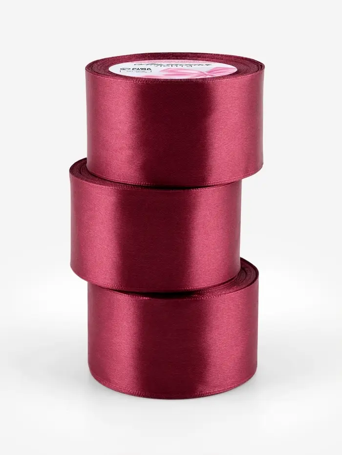 Атласная лента, набор 3 шт., 50 мм, 23±1 м, бордовая №48