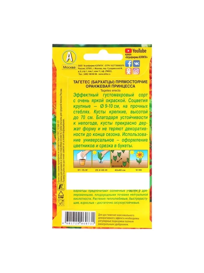 Набор семян Бархатцы "Оранжевая принцесса" прямостоячие, О, 5 шт.