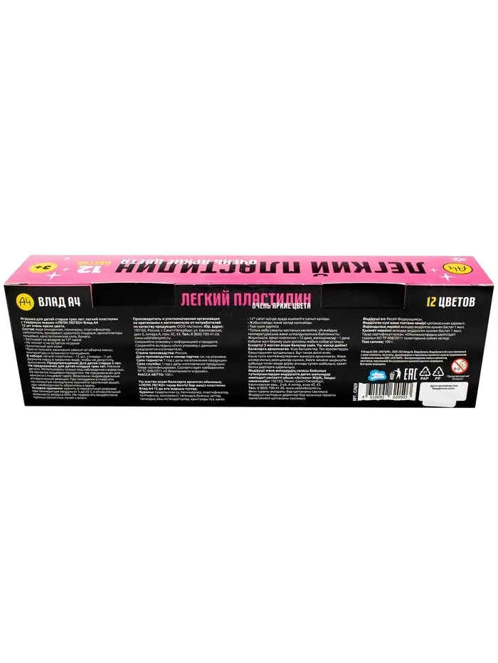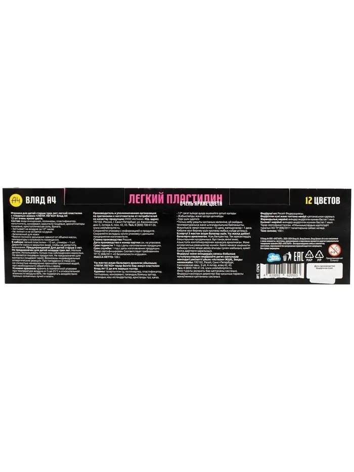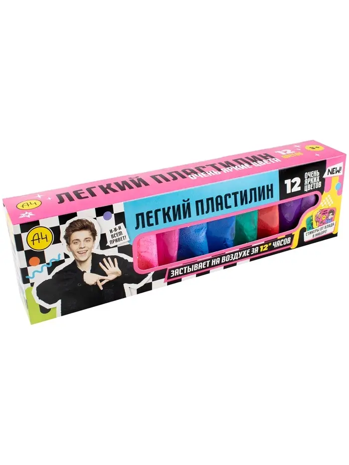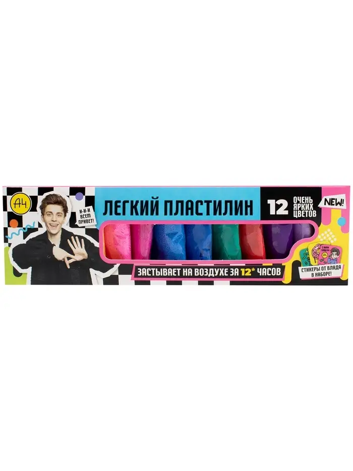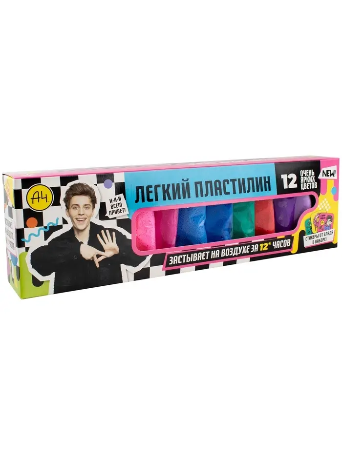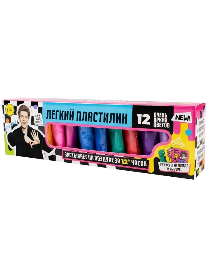 Игрушка в наборе Легкий пластилин Влад А4 12 шт очень яркие цвета коробка