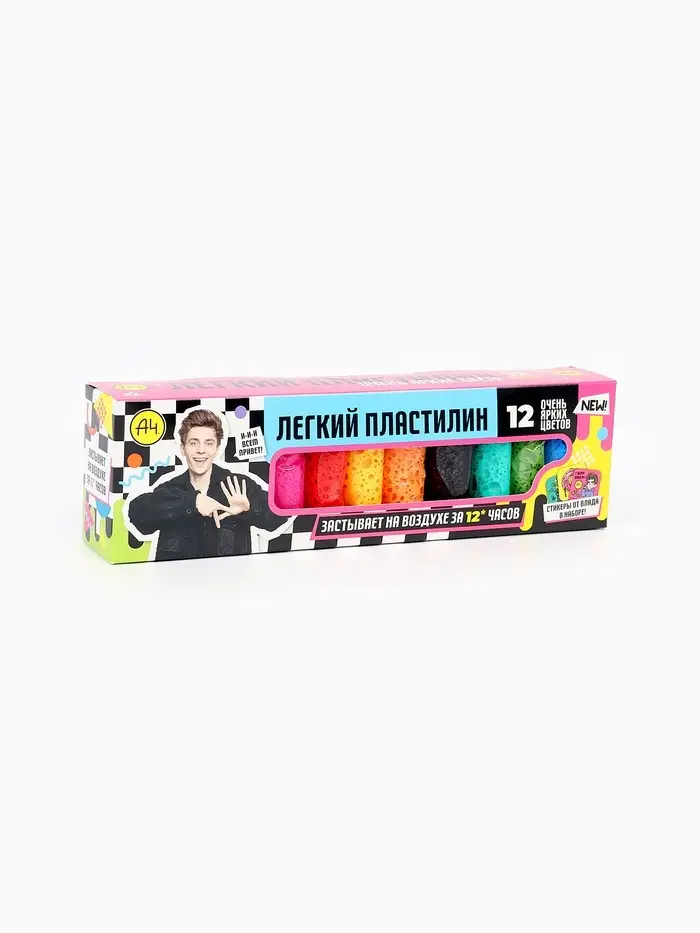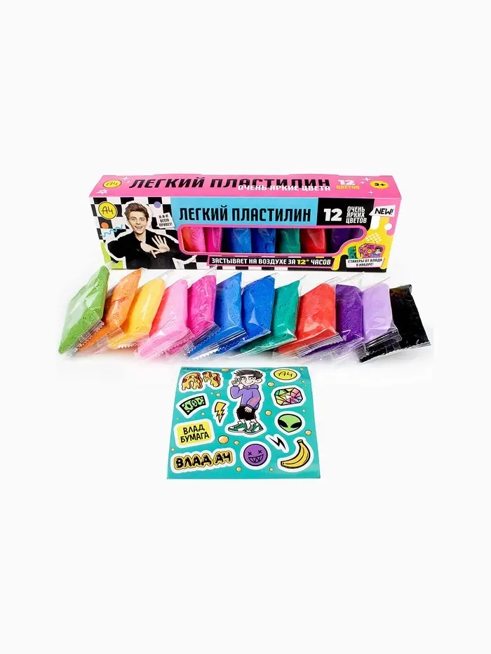 Легкий пластилин «Влад А4», 12 шт., яркие цвета