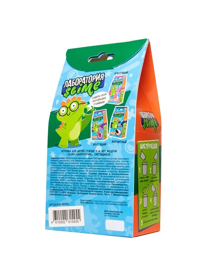 Игрушка для детей модели Slime лаборатория "Светящийся slime" 100 г