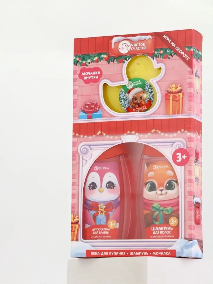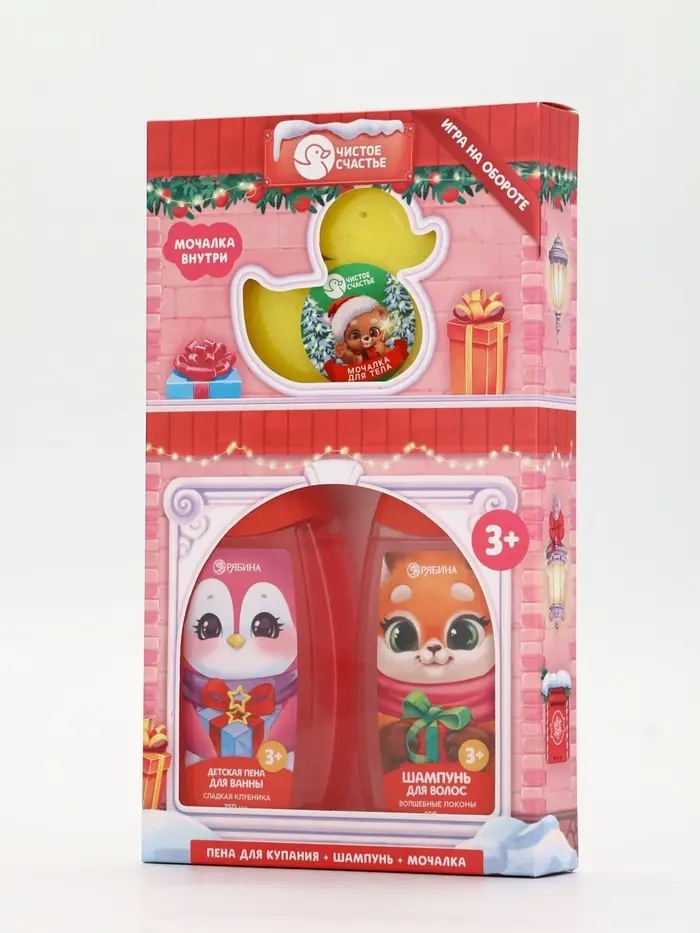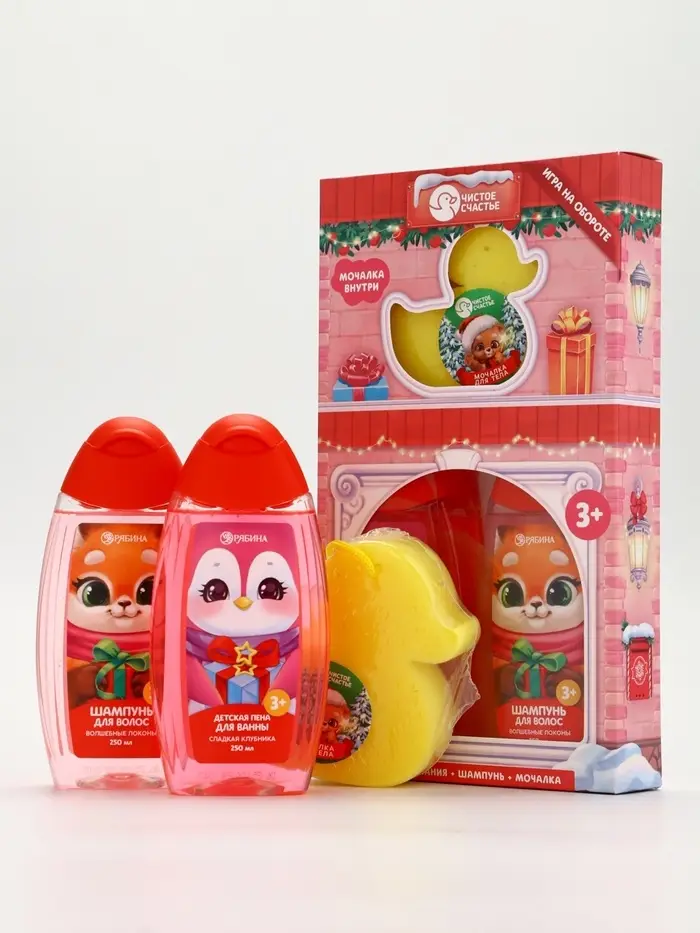 Подарочный набор для девочки «Для тебя»: пена для купания, шампунь для волос и мочалка утка, Чистое счастье
