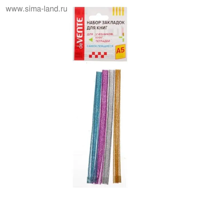 Закладки-ляссе с клеевым краем deVENTE. Shine, 6×290 мм, для книг A5, 4 тонкие ленты с блёстками, в пакете