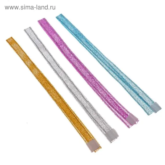 Набор закладок-ляссе deVENTE. Shine самоклеящихся для книг формата A5, 4 тонких ленты 6 x 290 мм, лента с блестками, в пластиковом пакете