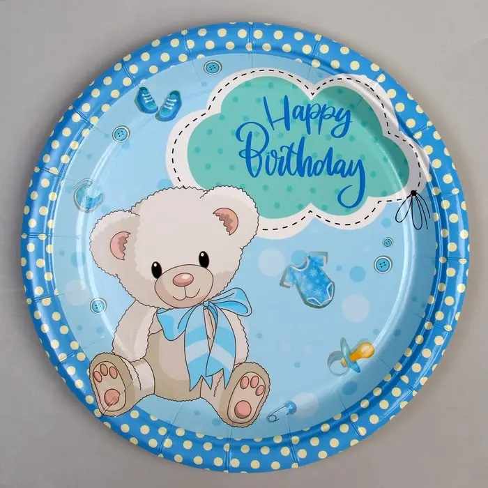 Тарелка бумажная одноразовая «С днём рождения!», 18 см, в наборе 6 штук, голубая