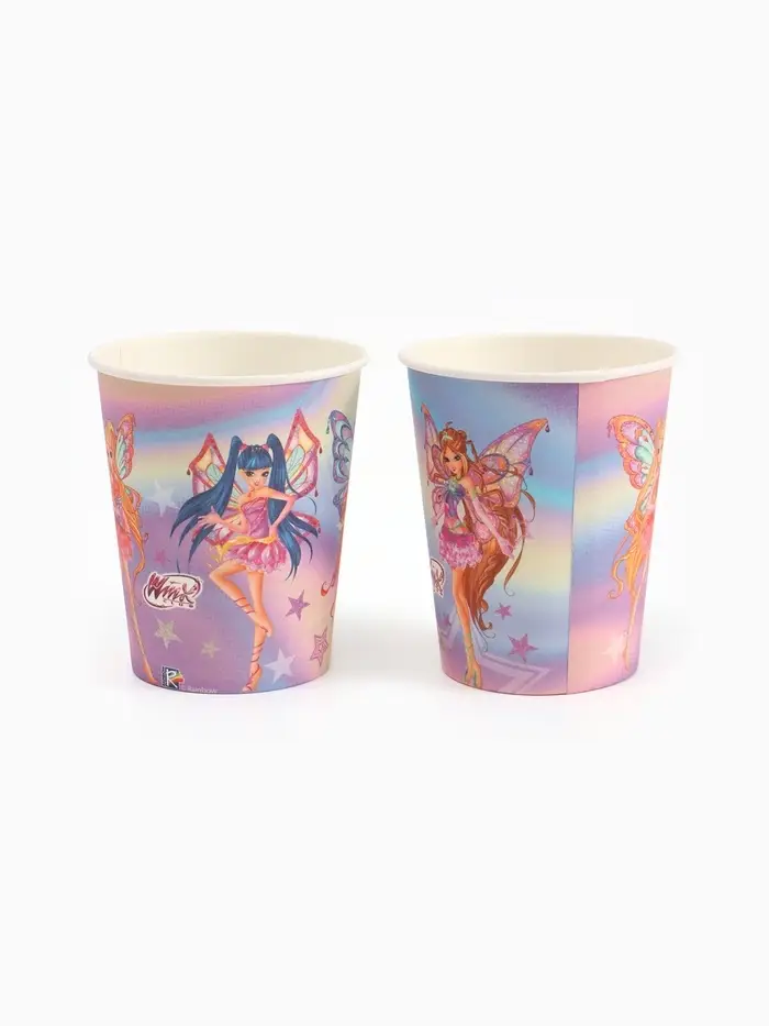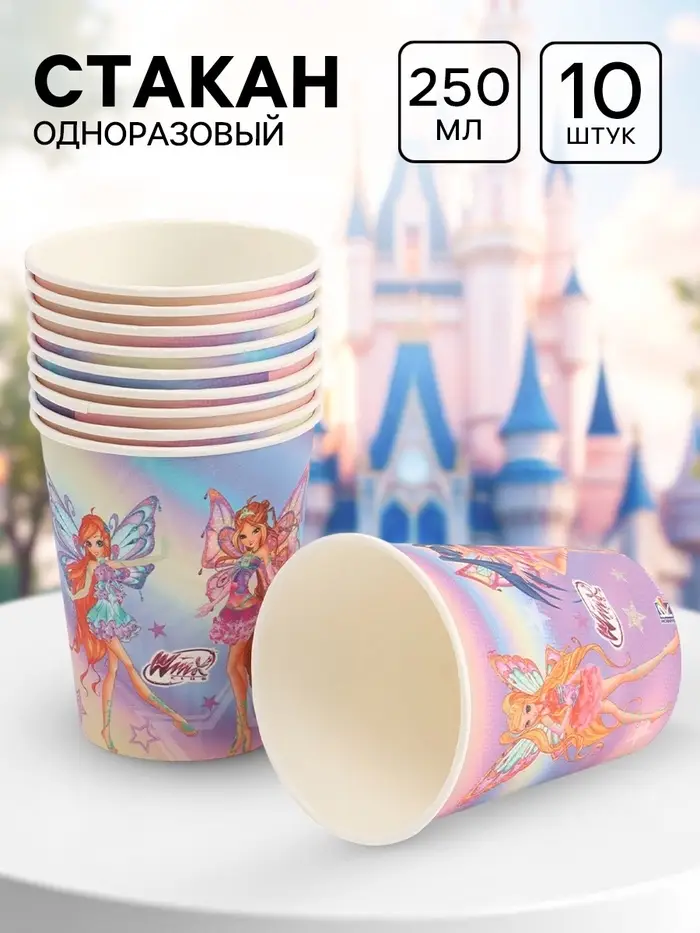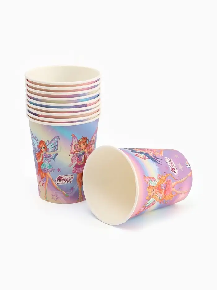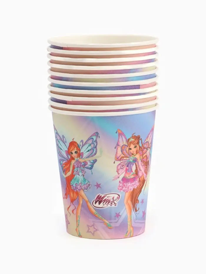Одноразовые стаканы 250 мл, набор 10 шт., ВИНКС — отличный выбор для детского праздника в стиле любимых фей! Стаканы украшены яркими изображениями персонажей Winx (Блум, Стелла, Флора, Муза, Текна и др.). Подходят для прохладных и тёплых напитков. Удобны для сервировки детских дней рождений, тематических вечеринок или даже для повседневного использования.