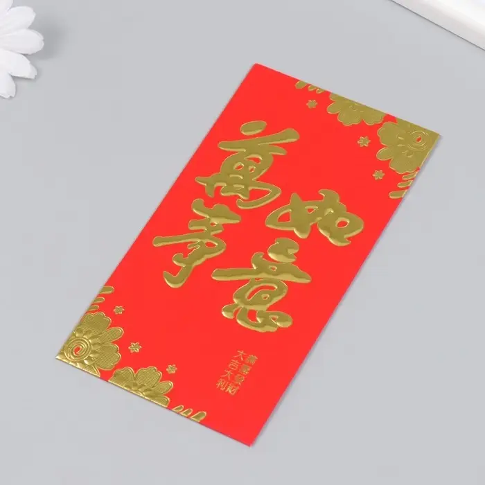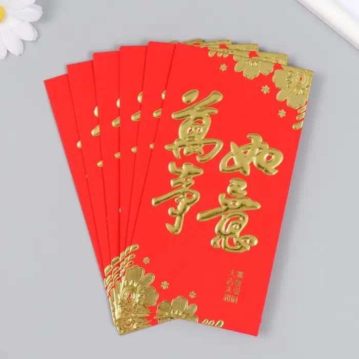 Конверт денежный бумага "Исполнения всего задуманного"набор 6шт красный с золотом 9х16,7 см