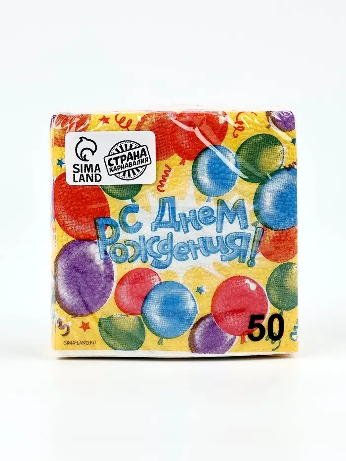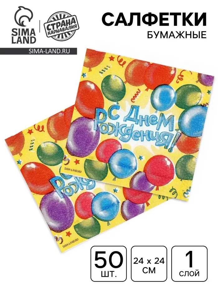 Салфетки бумажные однослойные «С днем рождения», воздушные шары, 24×24 см, 50 шт.