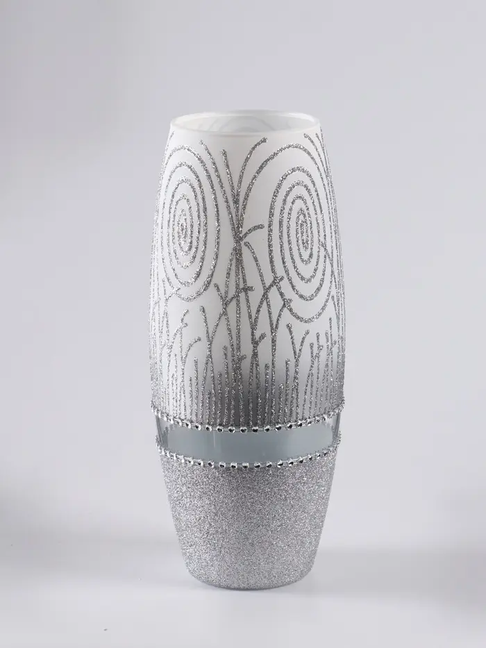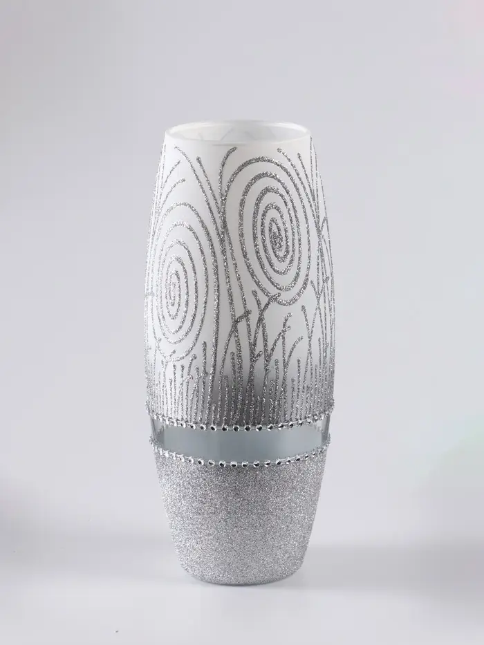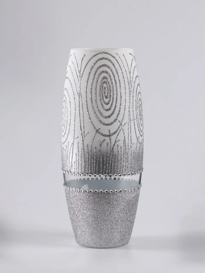 Ваза «Соблазн», овал, h=26 см, стекло, бело-серебристая