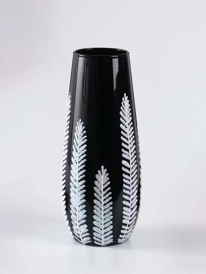 Эта настольная ваза станет универсальным акцентом для вашего интерьера. Её лаконичная форма и глубокий чёрный цвет создают идеальный фон для ярких букетов или одиночных стеблей, добавляя пространству стиль и графичность. Высота в 26 см делает её заметной деталью, сохраняя удобство использования на обеденном столе, консоли или полке.