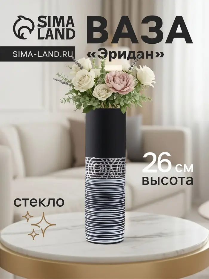 Ваза «Эридан. Узоры», h=26 см, стекло, чёрная