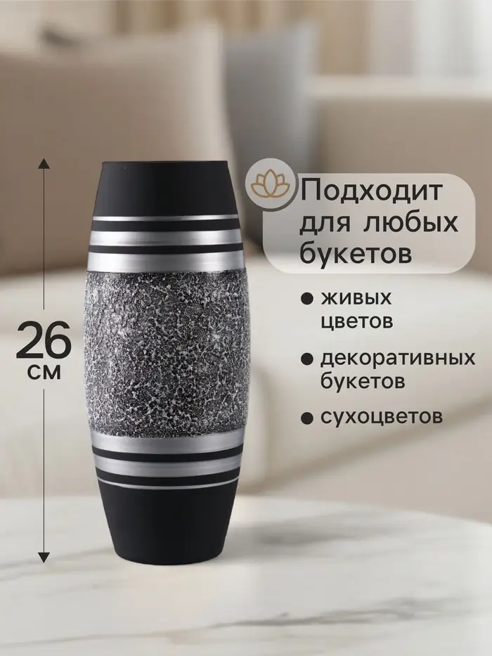 Идеальный подарок: Чёрная настольная ваза станет отличным сюрпризом и для себя, и для близких. Она подчеркнет стиль интерьера и станет великолепным украшением дома, создавая уют и настроение благодаря своей особенной красоте. Это не просто ваза – это стильное решение для вашего пространства!