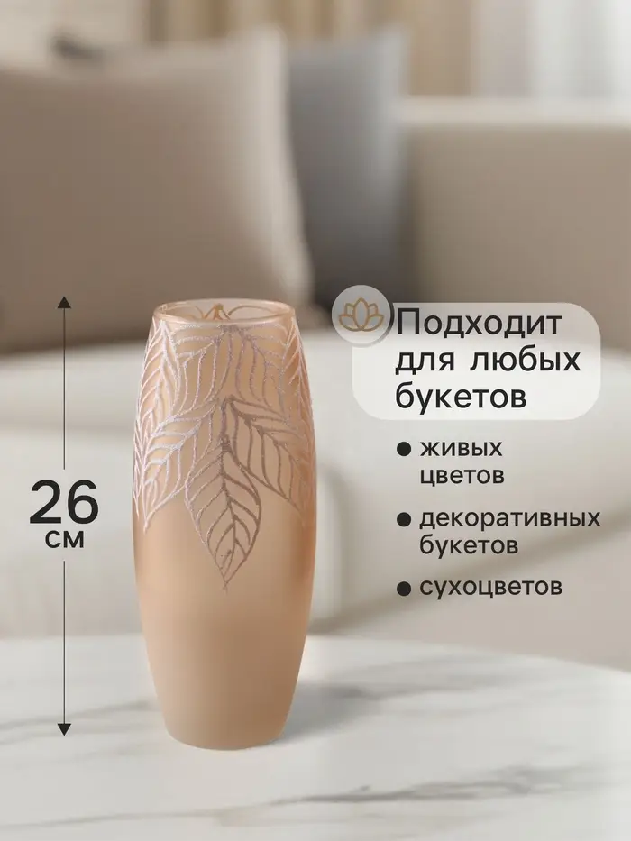 Ваза «Кармен» листья, овал, h=26 см, стекло, пудра