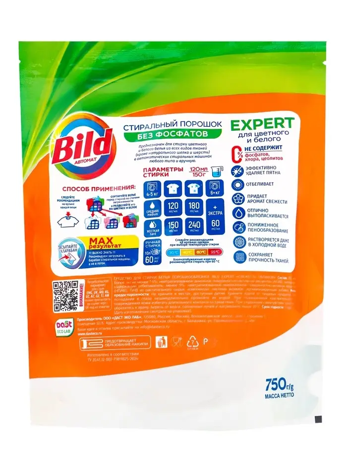 Стиральный порошок Bild EXPERT, свежесть облаков, дой-пак, 750 г