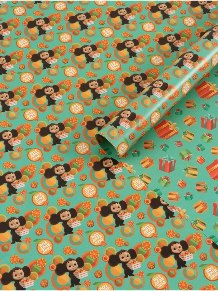Бумага упаковочная глянцевая двусторонняя «Чебурашка», 70 х 100 см