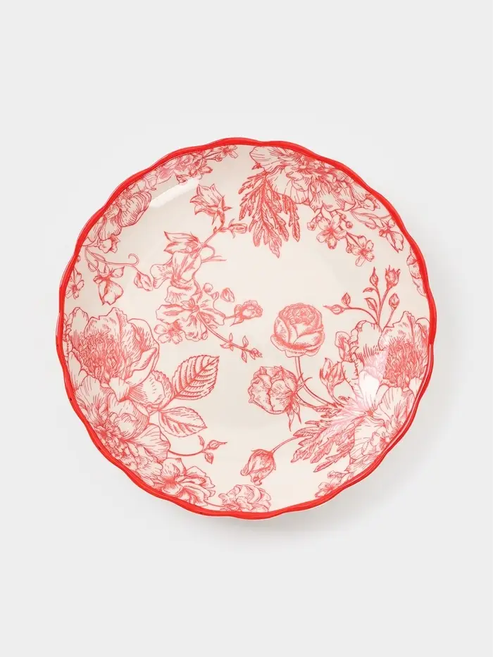 Плоская фарфоровая тарелка с растительным орнаментом из коллекции Botanica — это тонкий баланс между повседневной практичностью и эстетикой сервировки. Белоснежный фон подчёркивает изящество красного деколя, вдохновлённого природными мотивами, а классический диаметр 20,5 см подходит как для основных блюд, так и для закусок. Гладкая глазурованная поверхность легко переносит ежедневное использование, при этом сохраняя внешний вид нового изделия.
