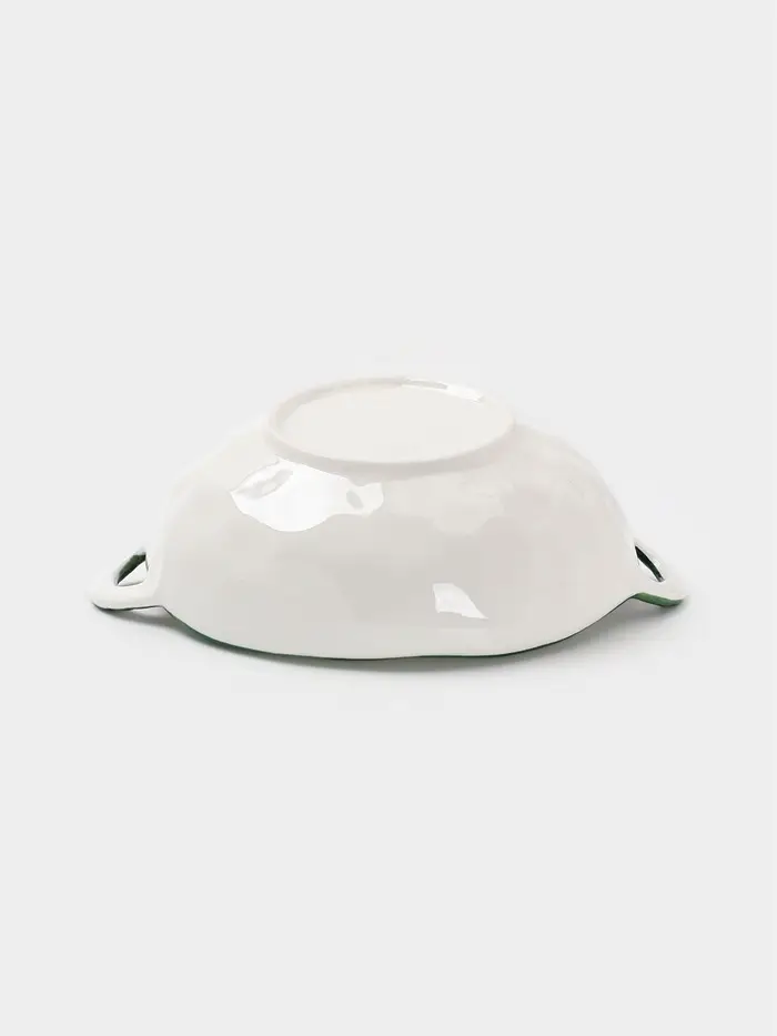 Бульонница с ручками «Гармония лепестков», 22.5×18×7 см, фарфор, белая, зелёная