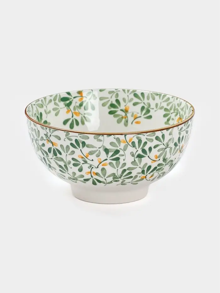 Салатник «Гармония лепестков», 15.5×5.5 см, фарфор, белая, зелёная