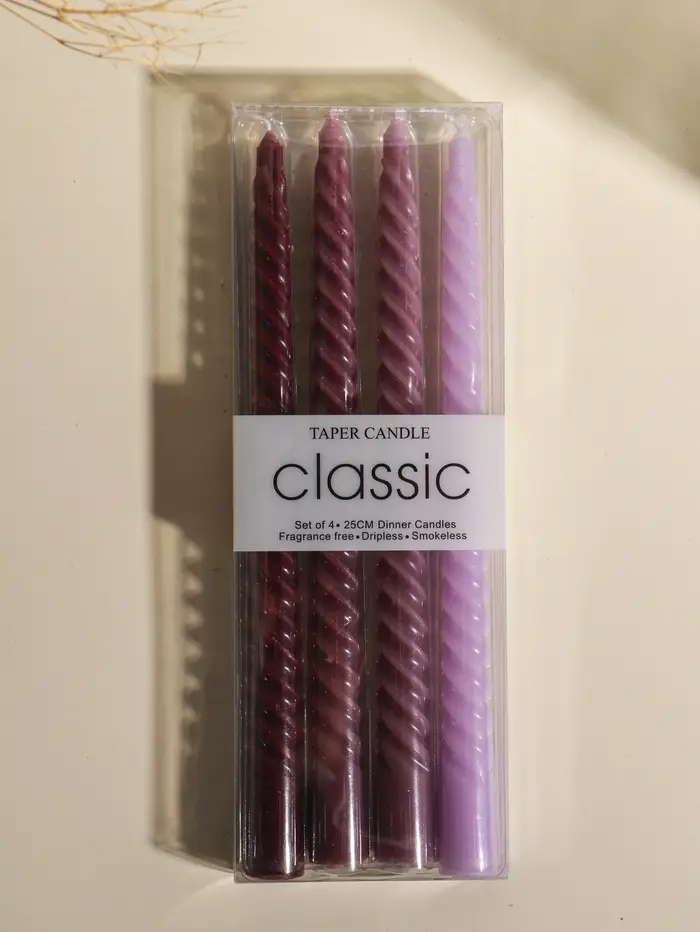 Набор свечей витых, 2х25 см, 4 шт, палитра бордового 25,5х8,8х2,4 см