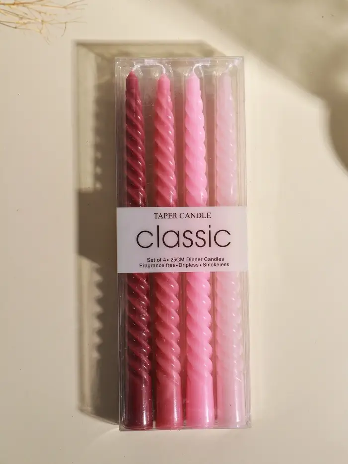 Набор свечей витых, 2х25 см, 4 шт, палитра розового 25,5х8,8х2,4 см