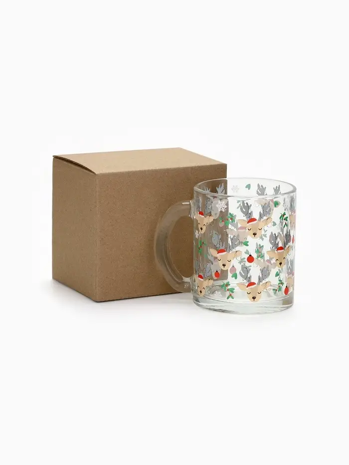 Стеклянная новогодняя кружка — это стильный и практичный аксессуар для вашей кухни или офиса.