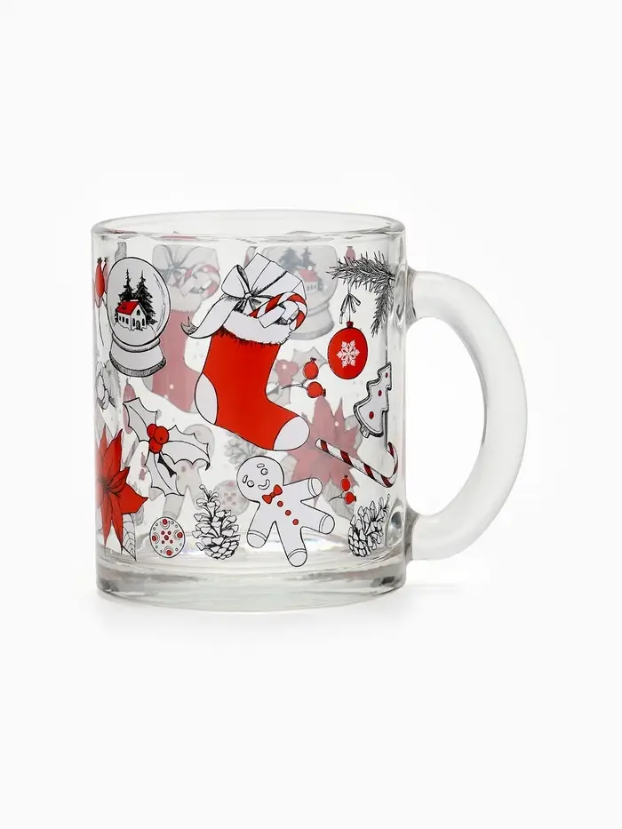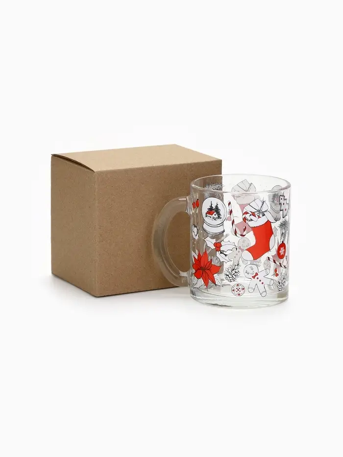 Стеклянная новогодняя кружка — это стильный и практичный аксессуар для вашей кухни или офиса.