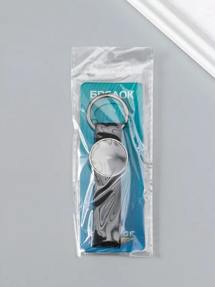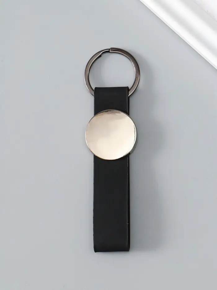 Брелок под нанесение кожзам, металл "Ремешок" размер окна d=2,7 см, чёрный 11,3х3х0,7 см