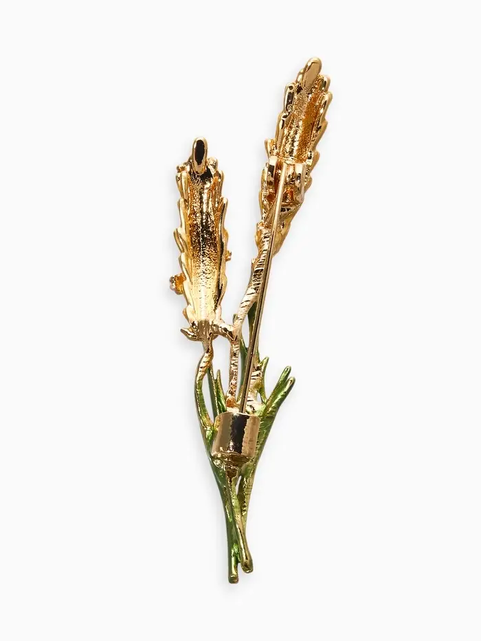 Брошь "Колосья", цвет жёлто-зелёный в золоте