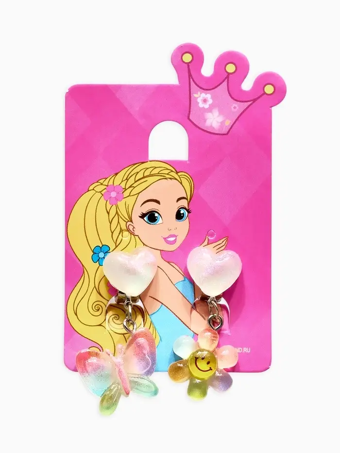Серьги-клипсы детские Выбражулька «Бабочка», сияющие, цветные