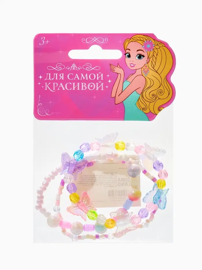 Браслет детский «Выбражулька», 3 шт. набор, бабочки, бусины, цветной