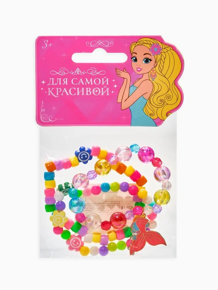 Браслет детский «Выбражулька», 3 шт. набор, хвост русалки, бусины, цветной