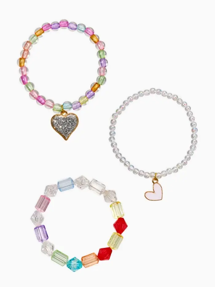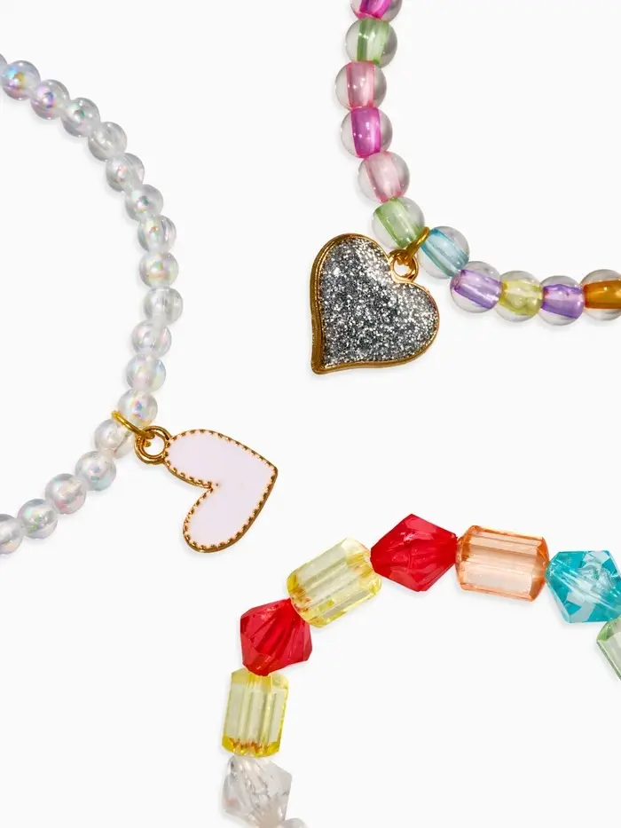 Браслет детский «Выбражулька», 3 шт. набор, сердца, бусины, цветной