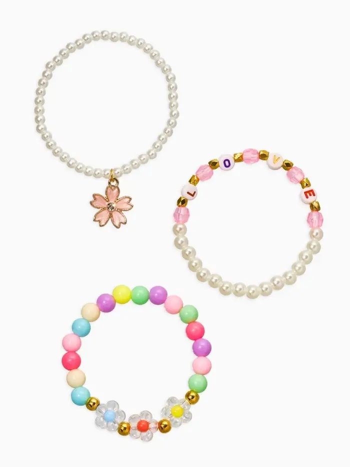 Браслет детский «Выбражулька», 3 шт. набор, цветок, бусины, цветной