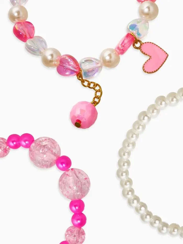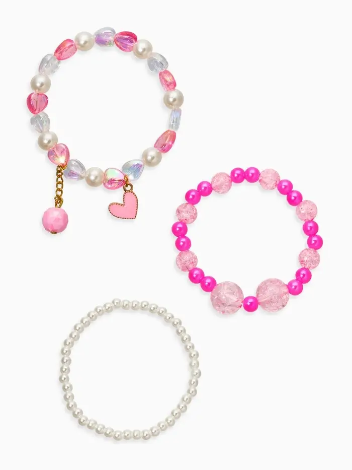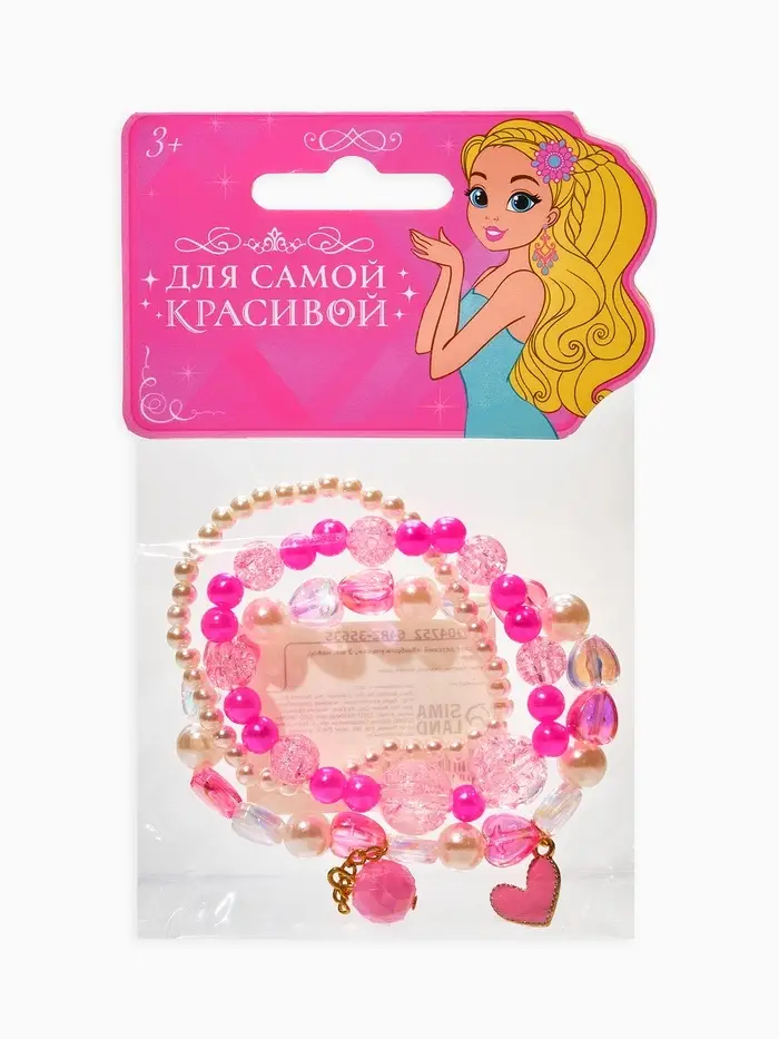 Браслет детский «Выбражулька», 3 шт. набор, сердце с подвеской, жемчуг, цветной