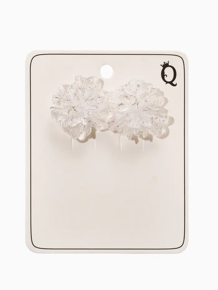 Серьги "Цветок ажурный воздушный", цвет прозрачный белый с блестками