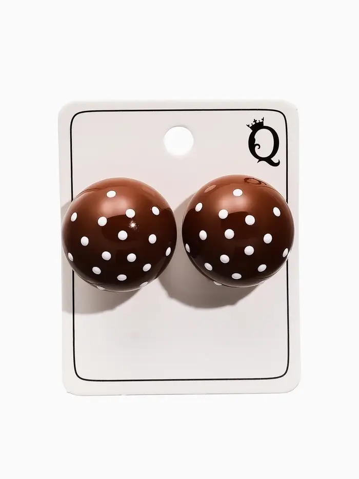 Серьги "Бусина" d=2см, в крапинку, цвет коричневый
