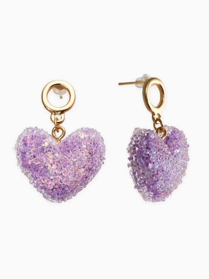 Серьги "Сердце сахарное", цвет фиолетовый в золоте