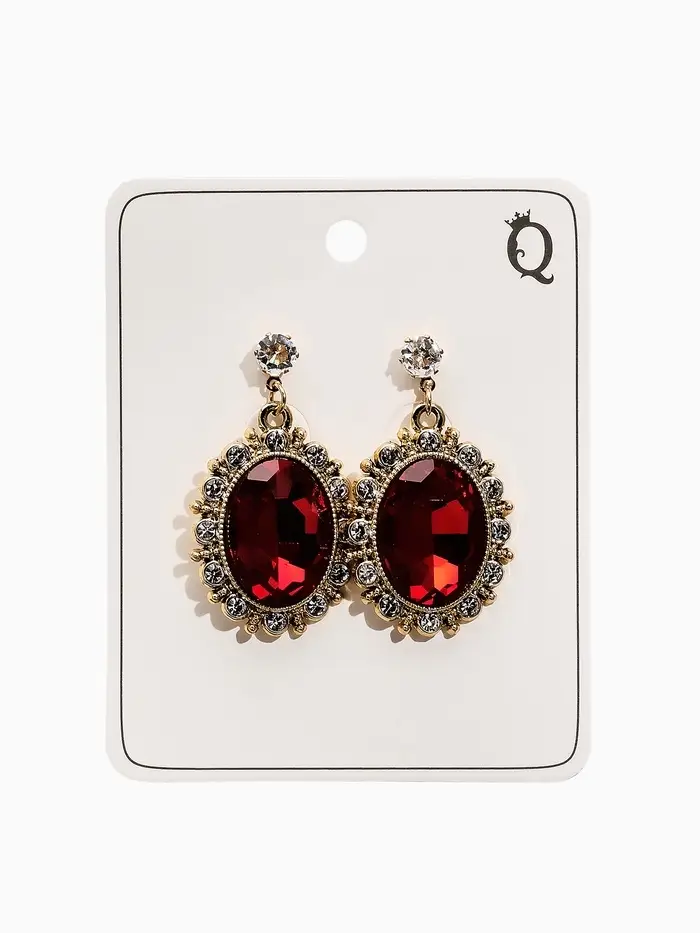 Серьги со стразами "Овал грань", цвет красный в золоте