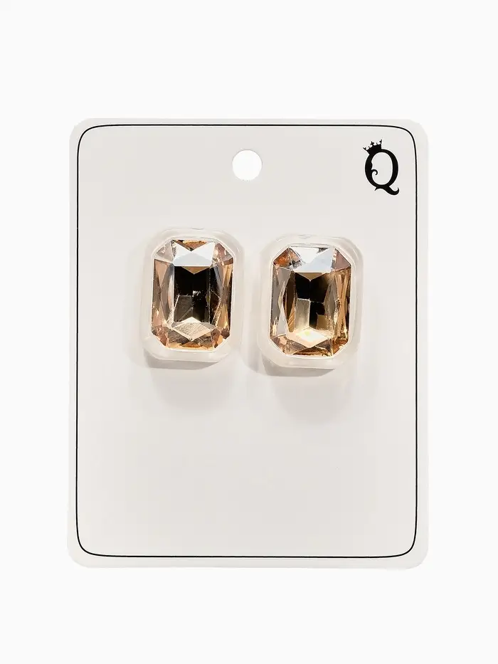 Серьги "Кристалл" прямоугольник грань, цвет прозрачно-золотой