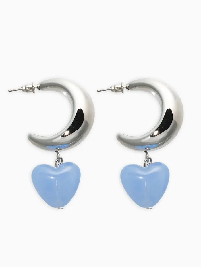Серьги "Новый стиль", сердечки, цвет голубой в серебре d3см