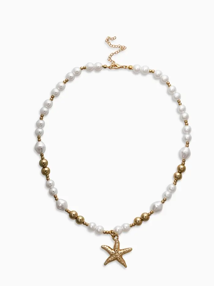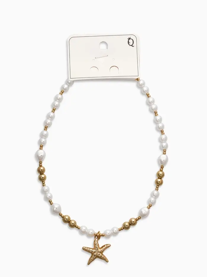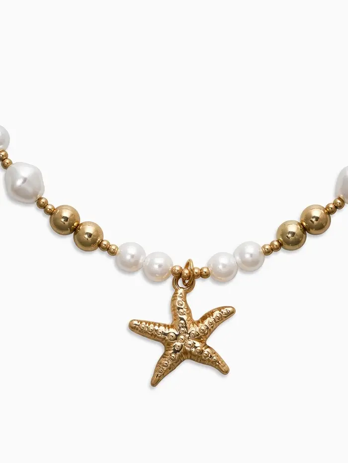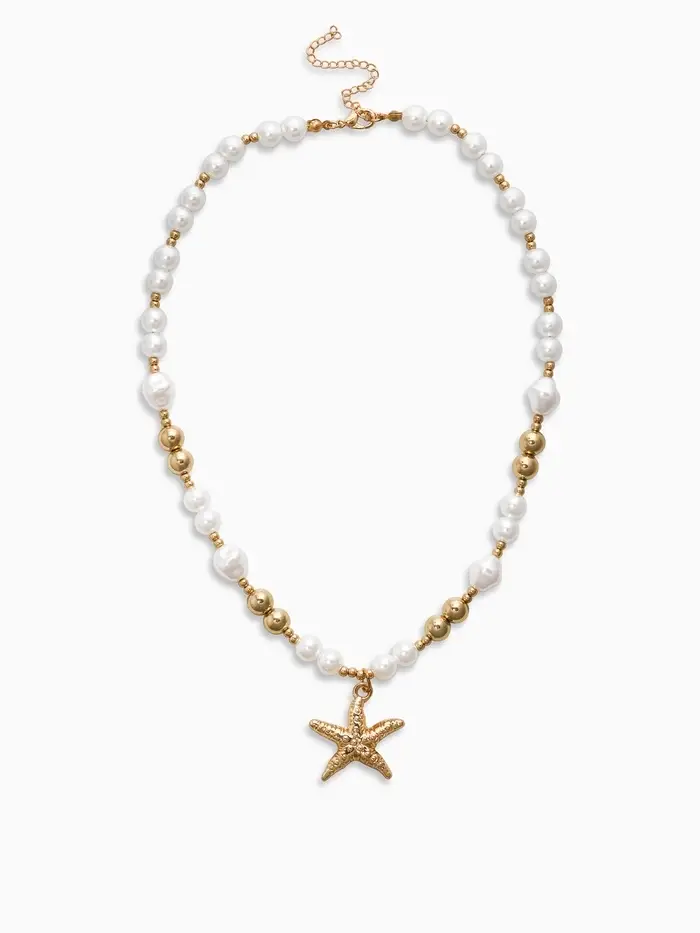 Кулон на жемчужных бусах "Морская звезда", цвет белый в золоте