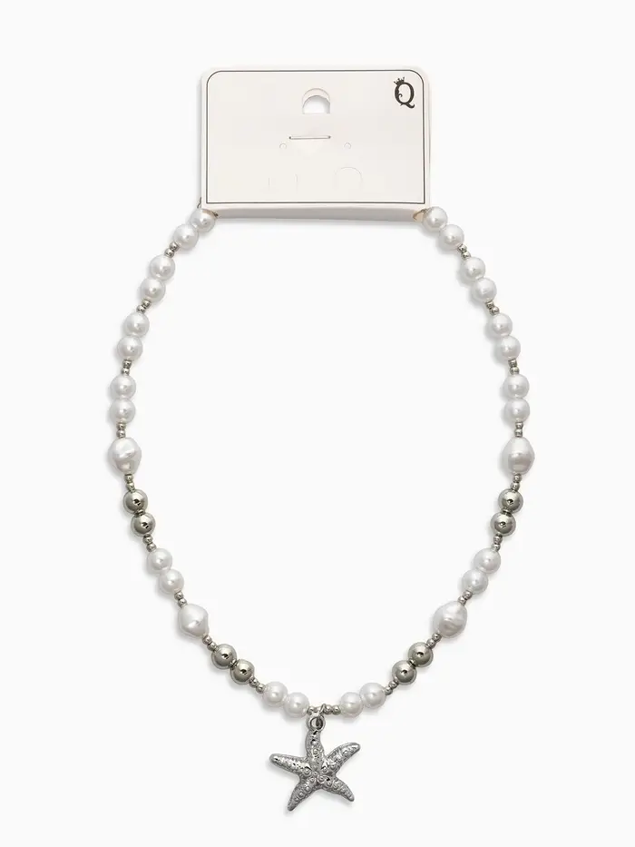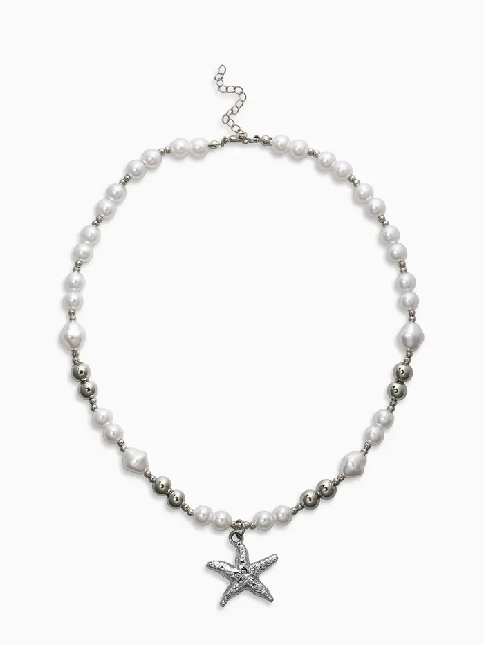 Кулон на жемчужных бусах "Морская звезда", цвет белый в серебре