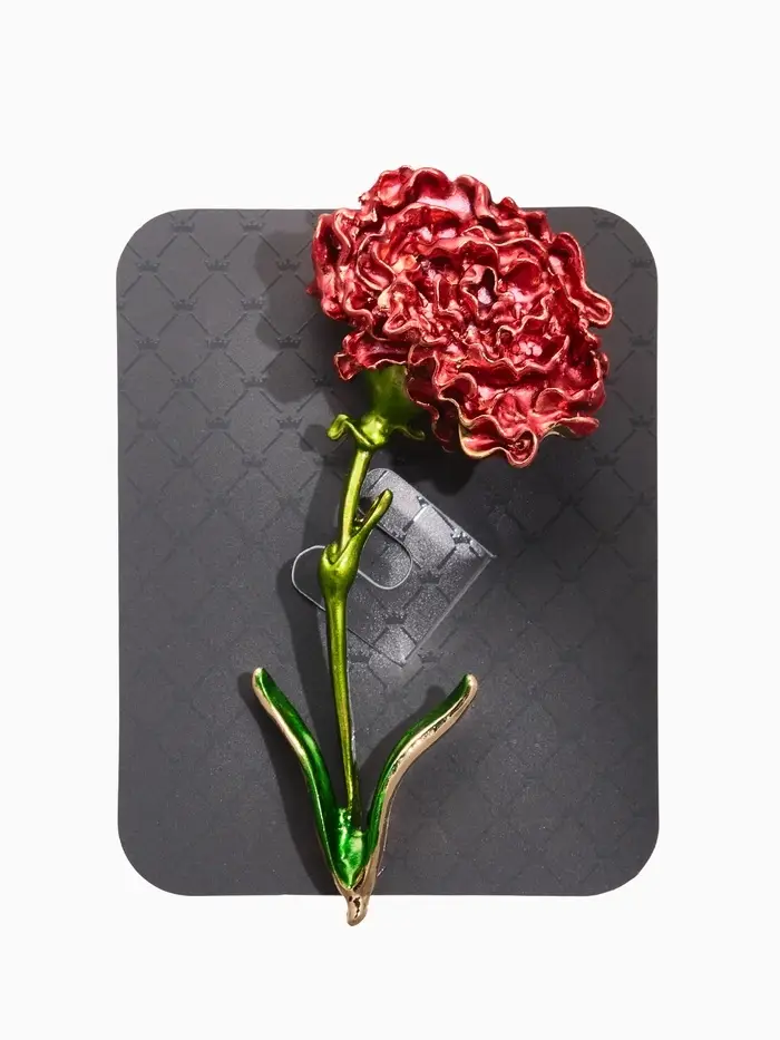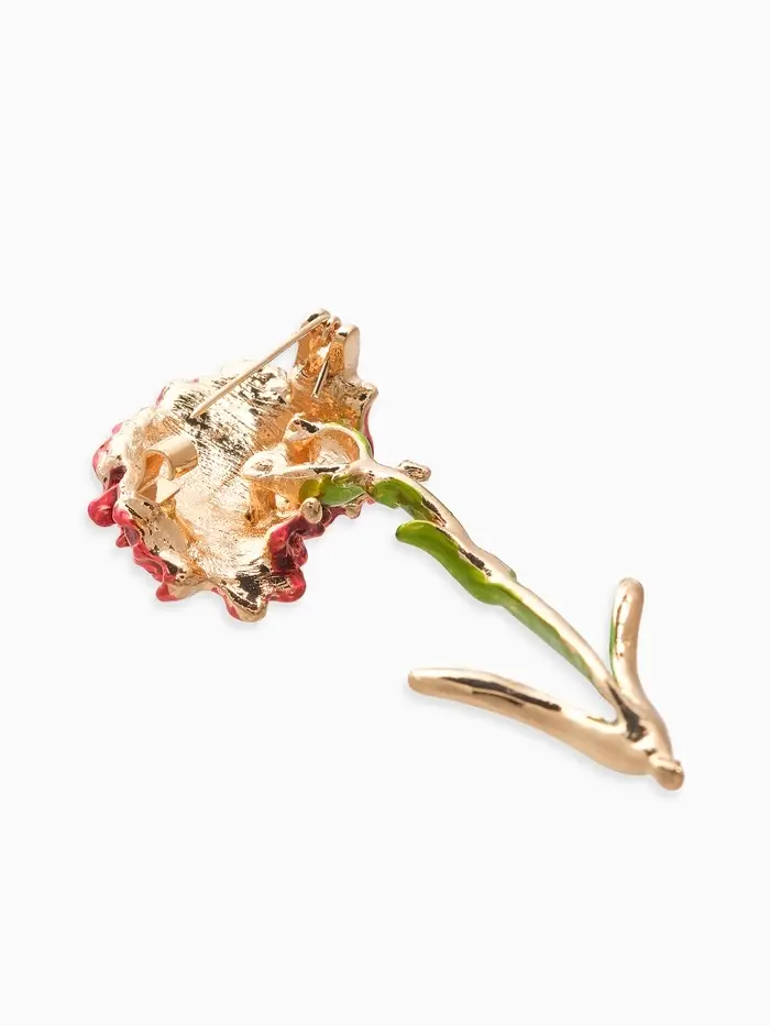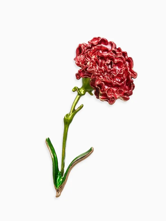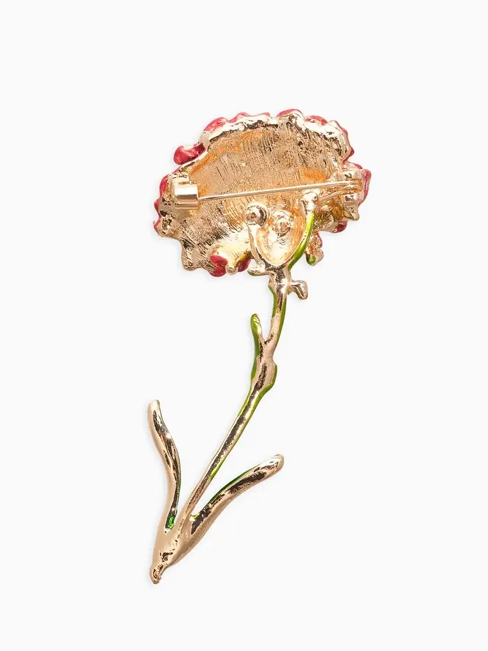 Брошь "Цветок гвоздики", цвет красно-зелёный в золоте