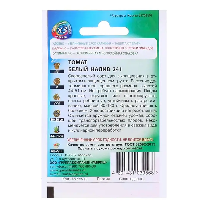 Семена Томат "Белый налив 241", раннеспелый, детерминантный 0,05 г серия ХИТх3