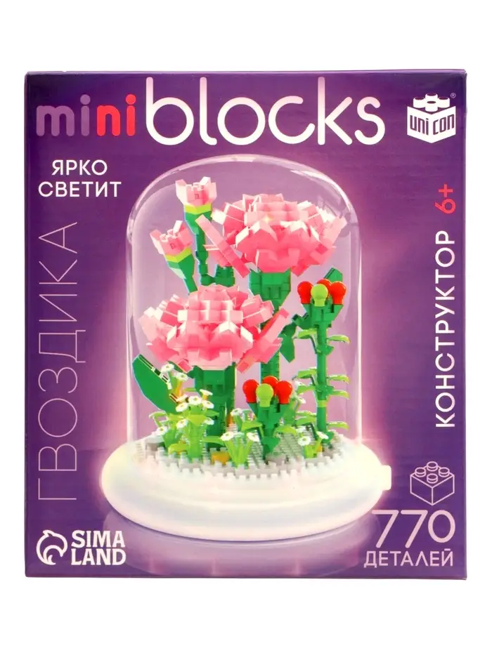 UNICON Конструктор Mini Blocks Гвоздика 770 деталей, свет