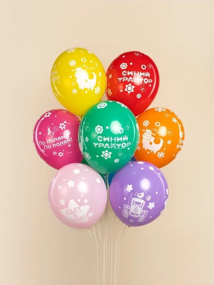 Воздушный шар латексный 12" «Синий трактор», ассорти, 25 шт.
