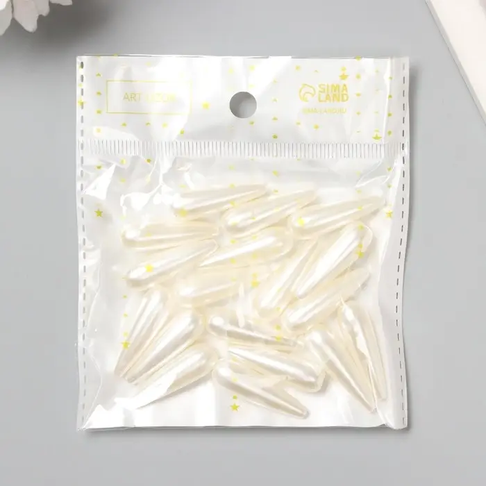 Бусины для творчества пластик "Жемчуг вытянутая капля" набор 20 гр 3х1х1 см