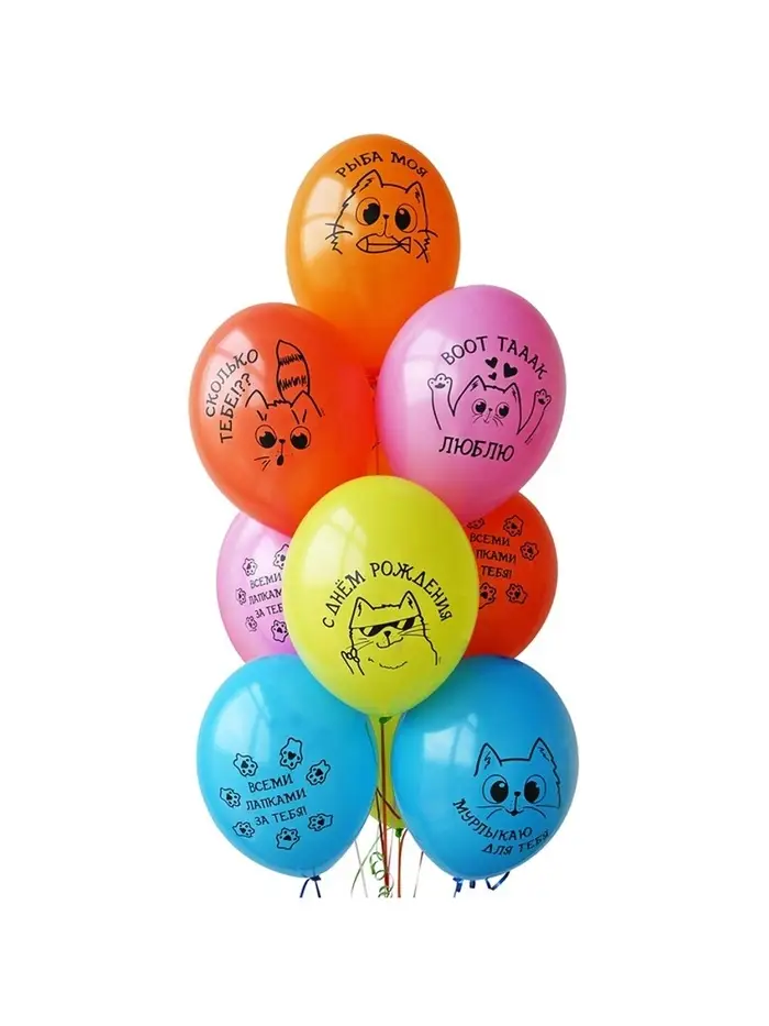Воздушный шар латексный 14" «С днём рождения. Котики», 50 шт.