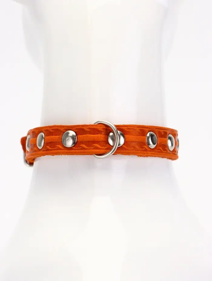 Ошейник кожаный однослойный украшенный, 1,2 см, ОШ 20-26 см микс цветов